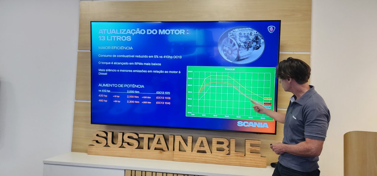 A Scania está apresentando o novo caminhão de 460 cv na 29ª Agrishow, em Ribeirão Preto (SP), destacando seu compromisso com a sustentabilidade e inovação no setor de transporte. As vendas já estão abertas, com entregas previstas para o segundo semestre deste ano.