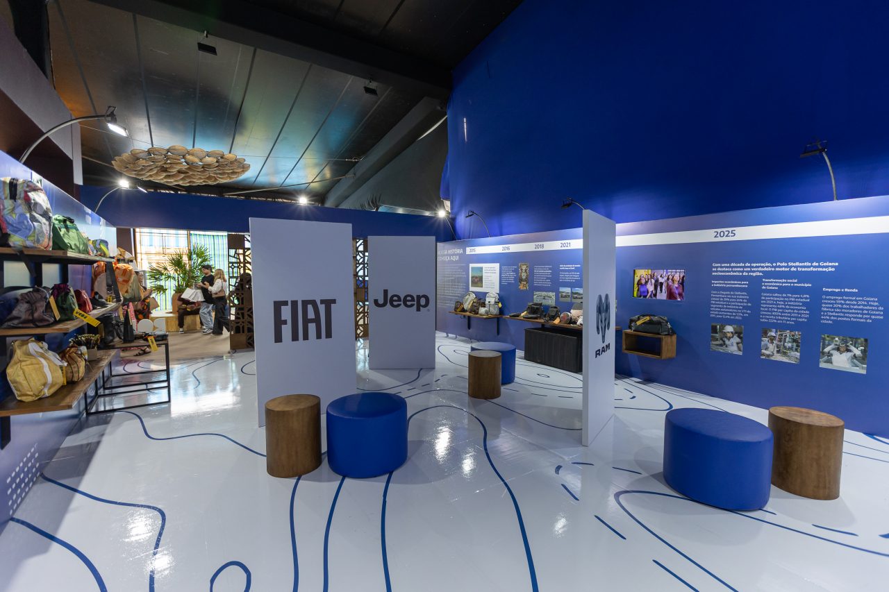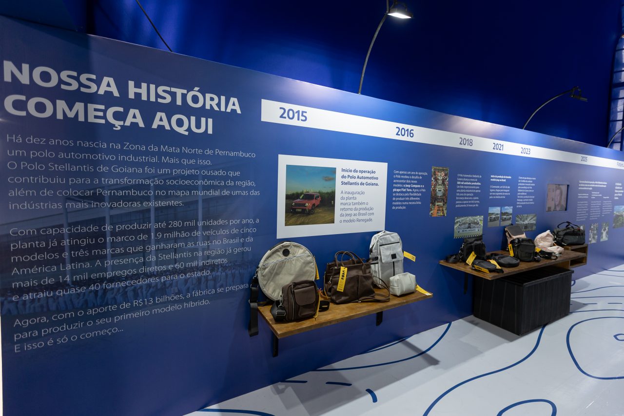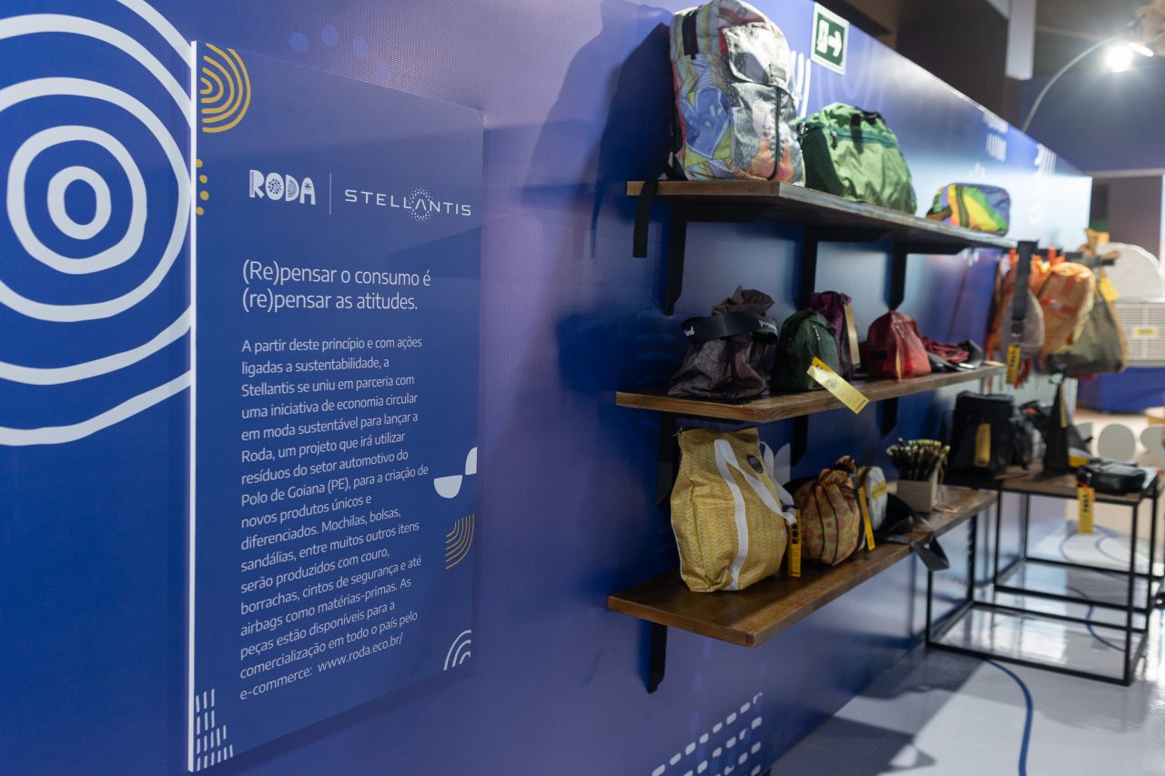 Mas o grande diferencial da presença da Stellantis na Fenearte está na economia circular. Por meio da parceria com a startup pernambucana Roda, a empresa exibe a coleção do projeto Vem Pra Roda, que transforma resíduos da indústria automotiva em produtos de moda e mobiliário. Criado em 2021, o projeto já reaproveitou 48 toneladas de materiais da fábrica de Goiana, gerando mais de 21,8 mil novos itens, como mochilas, bolsas, sandálias, bancos e luminárias.