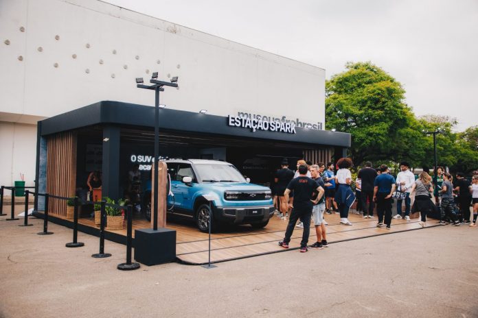 O evento é uma vitrine para o novo Chevrolet Spark, um veículo 100% elétrico que chega ao mercado.