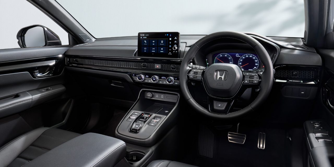 Destaque é a versão específica para o Japão, a CR-V e:HEV RS BLACK EDITION, que combina esportividade e sofisticação com acabamentos em preto no exterior e interior.