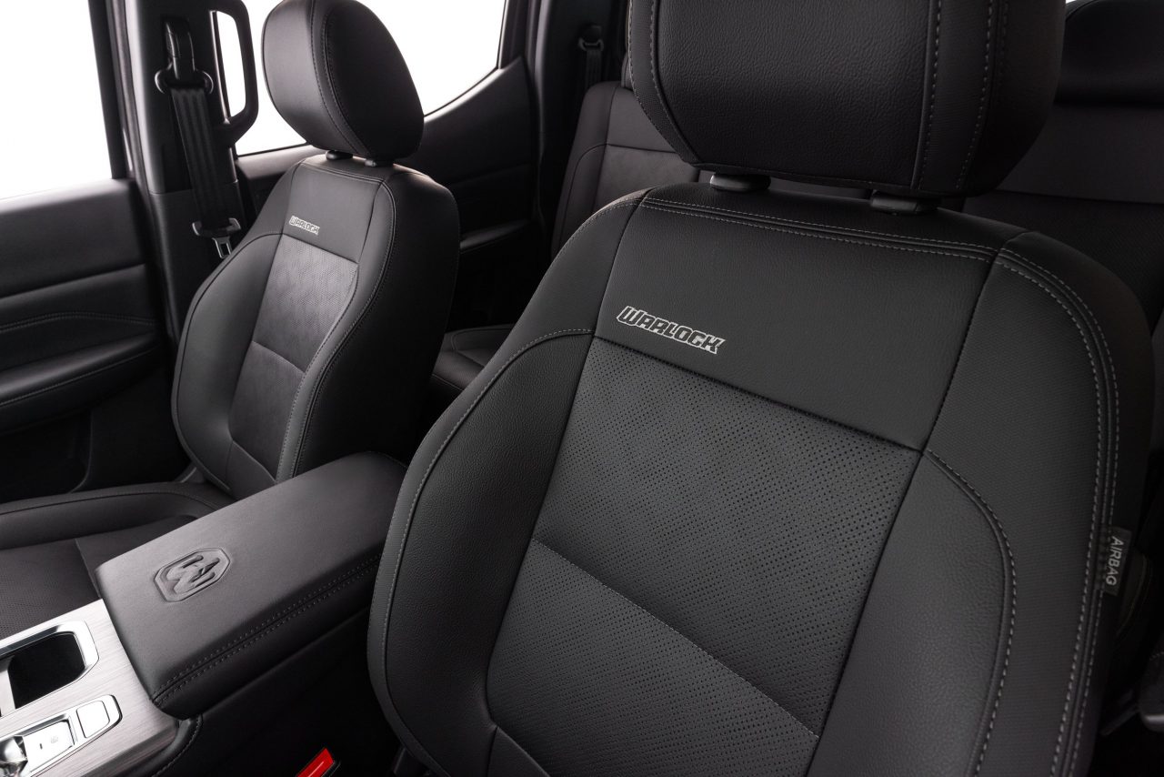 No visual, a Ram Dakota Warlock apresenta faróis afilados totalmente em LED, tecnologia também aplicada às lanternas e aos faróis de neblina. A dianteira exibe uma grade ampla com o logo RAM integrado e um capô musculoso com o emblema RAM TURBO, referência direta ao motor turbodiesel que impulsiona o modelo.