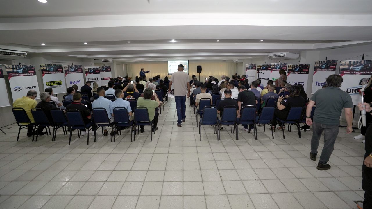 O tema da palestra aborda a rápida transformação tecnológica dos veículos, que evoluíram de sistemas mecânicos tradicionais como o carburador para complexas estruturas de propulsão elétrica.