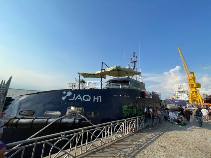 O barco está atracado em frente ao Lounge JAQ Hidrogênio, um espaço de 540 m² construído para integrar inovação, sustentabilidade e tecnologia. O local será o ponto de encontro das empresas parceiras durante a conferência, sediando eventos, reuniões e ativações temáticas voltadas à economia verde.