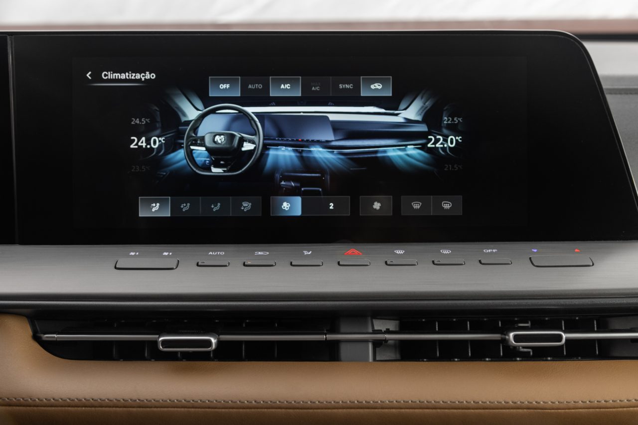 Itens de conforto como ar-condicionado digital de duas zonas, carregador por indução refrigerado, painel de instrumentos digital, freio de estacionamento eletrônico, bancos com ajustes elétricos e Keyless Enter’n Go reforçam o posicionamento premium.
