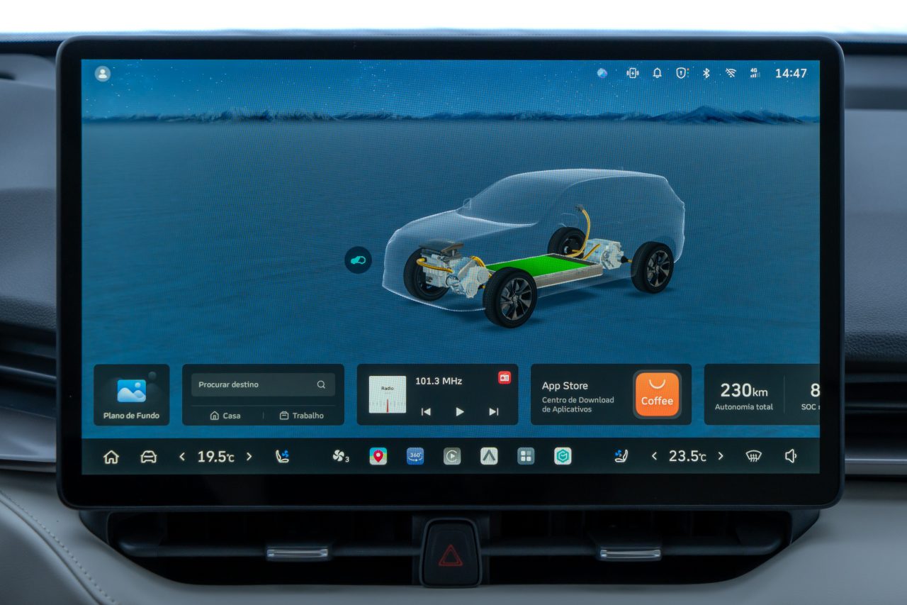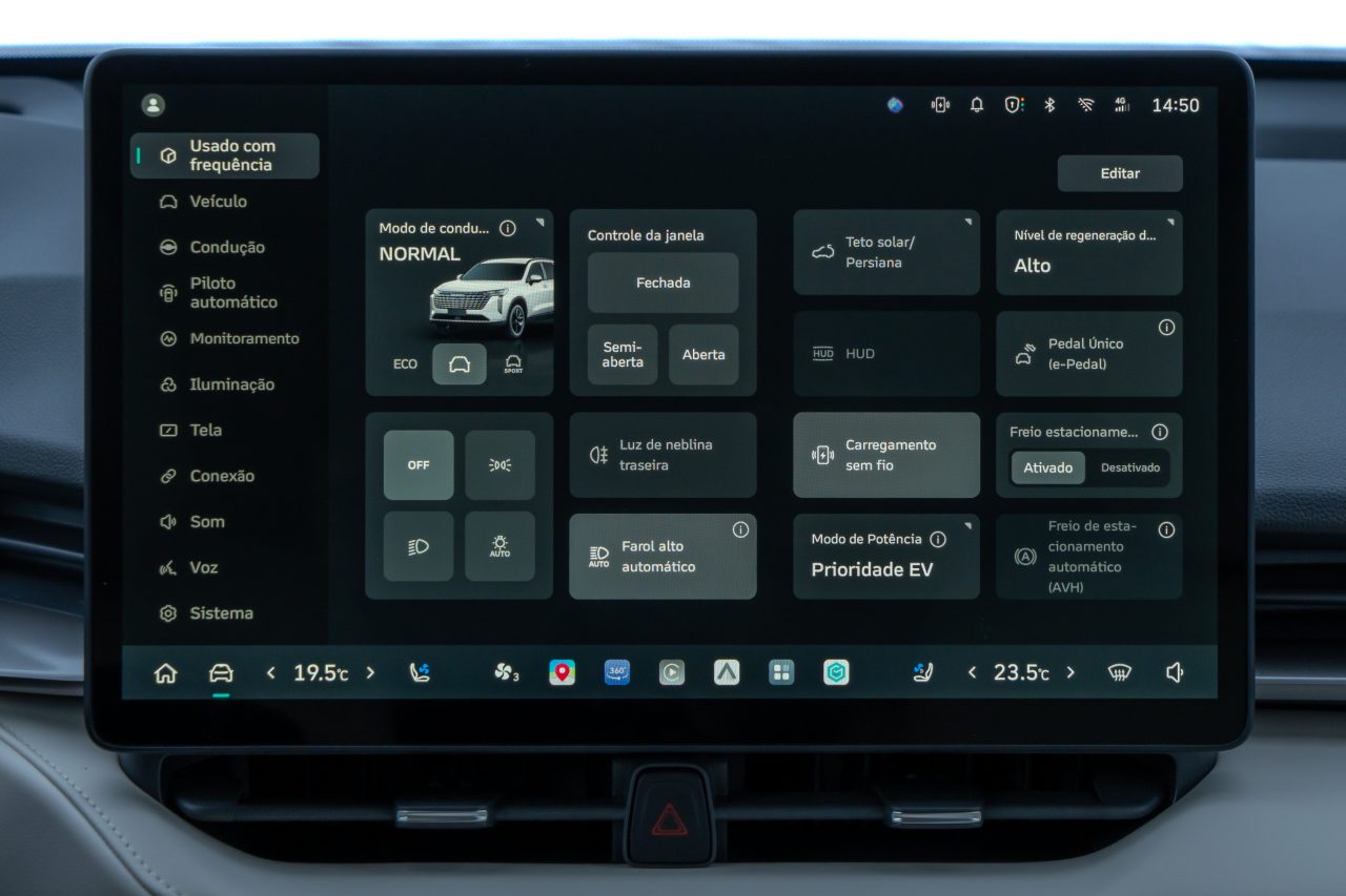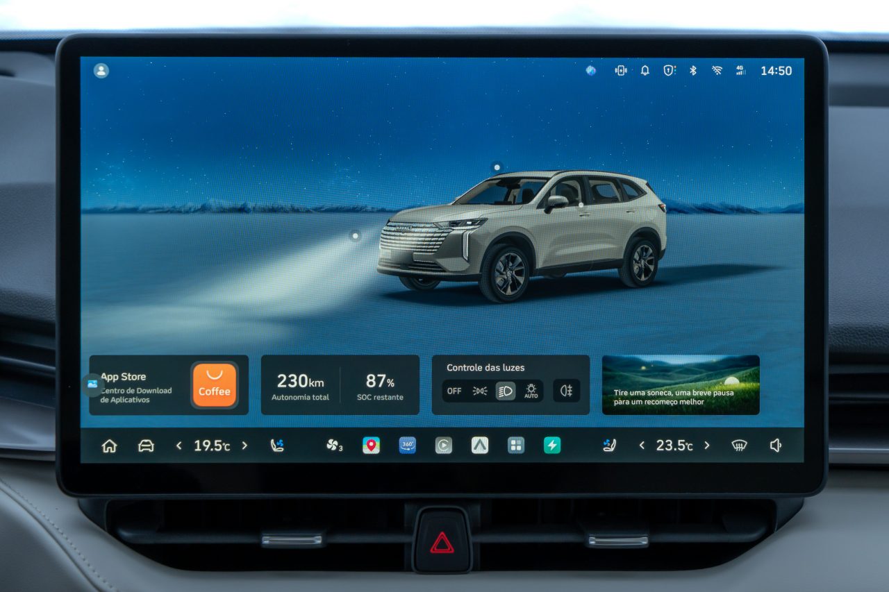 A versão PHEV19 mantém a bateria de 19 kWh, com 326 cv e 540 Nm, e autonomia elétrica de 115 km (WLTP) e 73 km (Inmetro). Já o HEV2, híbrido autorrecarregável, entrega 243 cv e 540 Nm, reforçando sua proposta de economia e uso urbano.