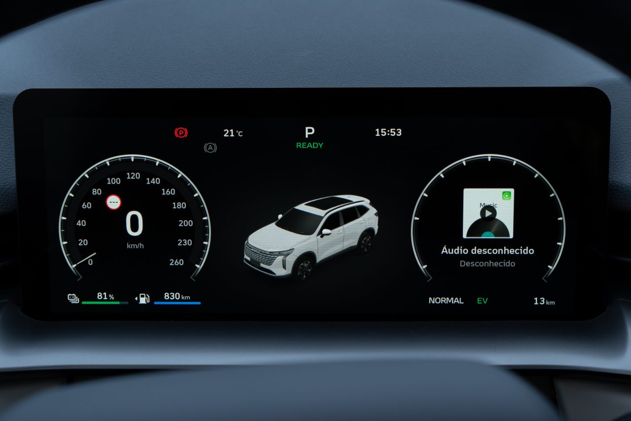 Na motorização, o sistema híbrido inteligente Hi4 combina motor 1.5 turbo (150 cv e 240 Nm) a motores elétricos de alta eficiência. As versões PHEV35 e GT usam bateria de 35 kWh, entregando 393 cv e 772 Nm, com autonomia elétrica de 170 km (WLTP) e 119 km (Inmetro). A transmissão híbrida DHT de duas marchas garante suavidade entre os modos elétrico, híbrido e 4WD.