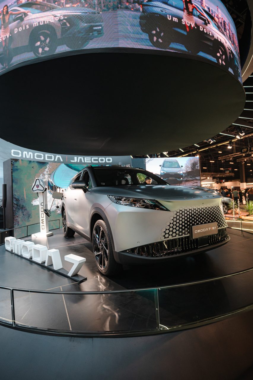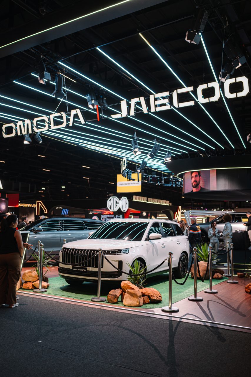 O espaço, localizado no corredor principal de acesso ao pavilhão, dá destaque a toda a linha de SUVs Omoda e Jaecoo, incluindo modelos já vendidos no Brasil e outros previstos para chegar ao País até 2026. A estratégia reforça o compromisso de longo prazo da marca, mirando participação relevante em segmentos de SUVs compactos, médios e eletrificados.