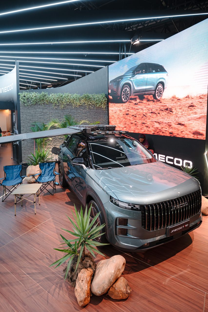 No estande, a marca também expõe o Jaecoo 5 e o Jaecoo 8, ampliando a percepção de portfólio completo e abordando diferentes faixas de preço e necessidades. O Jaecoo 8, em especial, aponta para atuação em um segmento superior, competindo com SUVs de maior porte como Chery Tiggo 8 Pro, Kia Sorento e Hyundai Santa Fe.