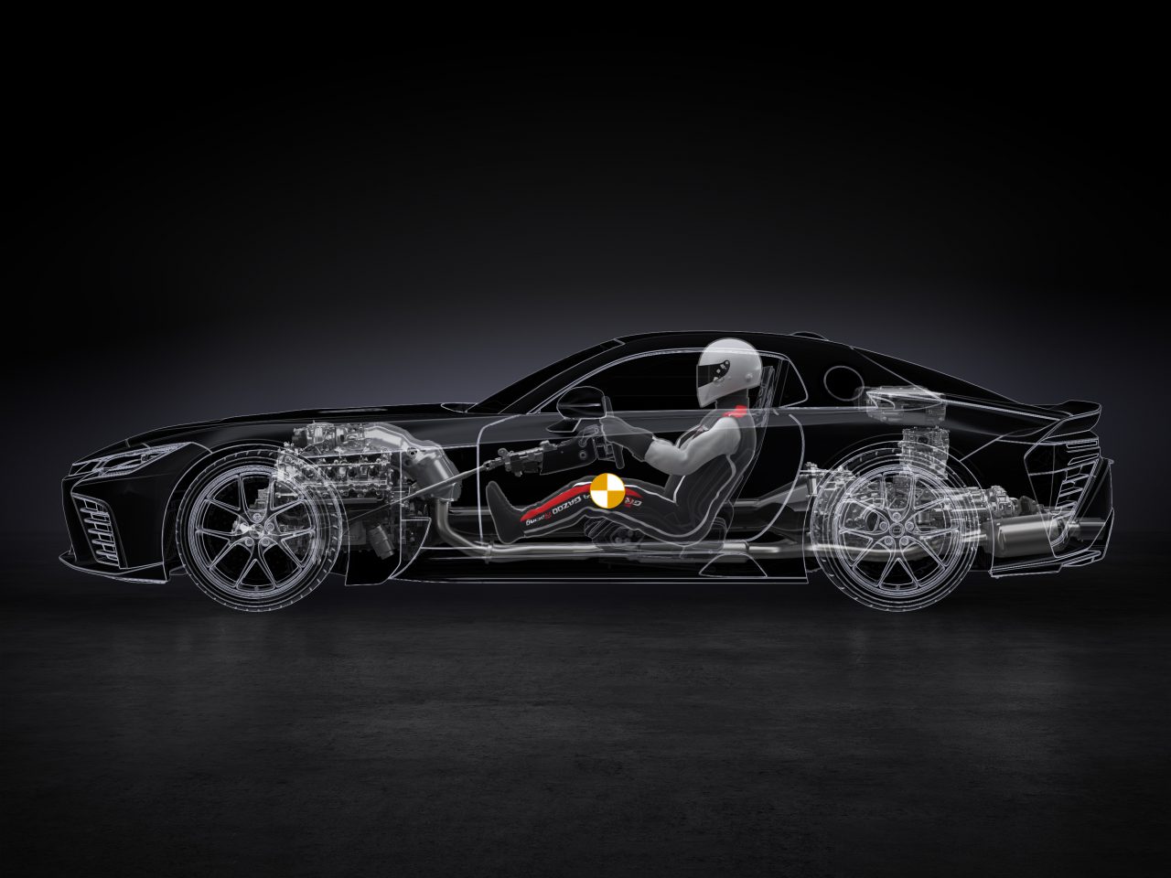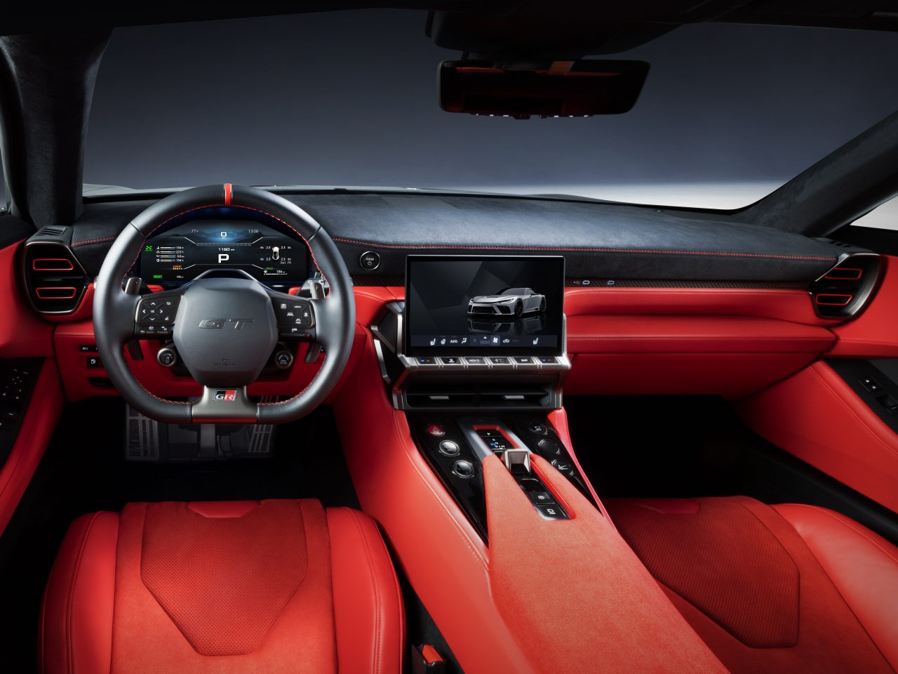 O GR GT foi concebido para oferecer sensação de unidade entre carro e condutor, com centro de gravidade extremamente baixo, leveza com alta rigidez e máxima eficiência aerodinâmica. O sistema híbrido combina o motor V8 biturbo com um motor elétrico integrado ao transaxle traseiro, garantindo desempenho excepcional e distribuição de peso otimizada (45:55). A suspensão duplo A em alumínio, pneus Michelin Pilot Sport Cup 2 desenvolvidos exclusivamente e freios de carbono Brembo reforçam o caráter esportivo.