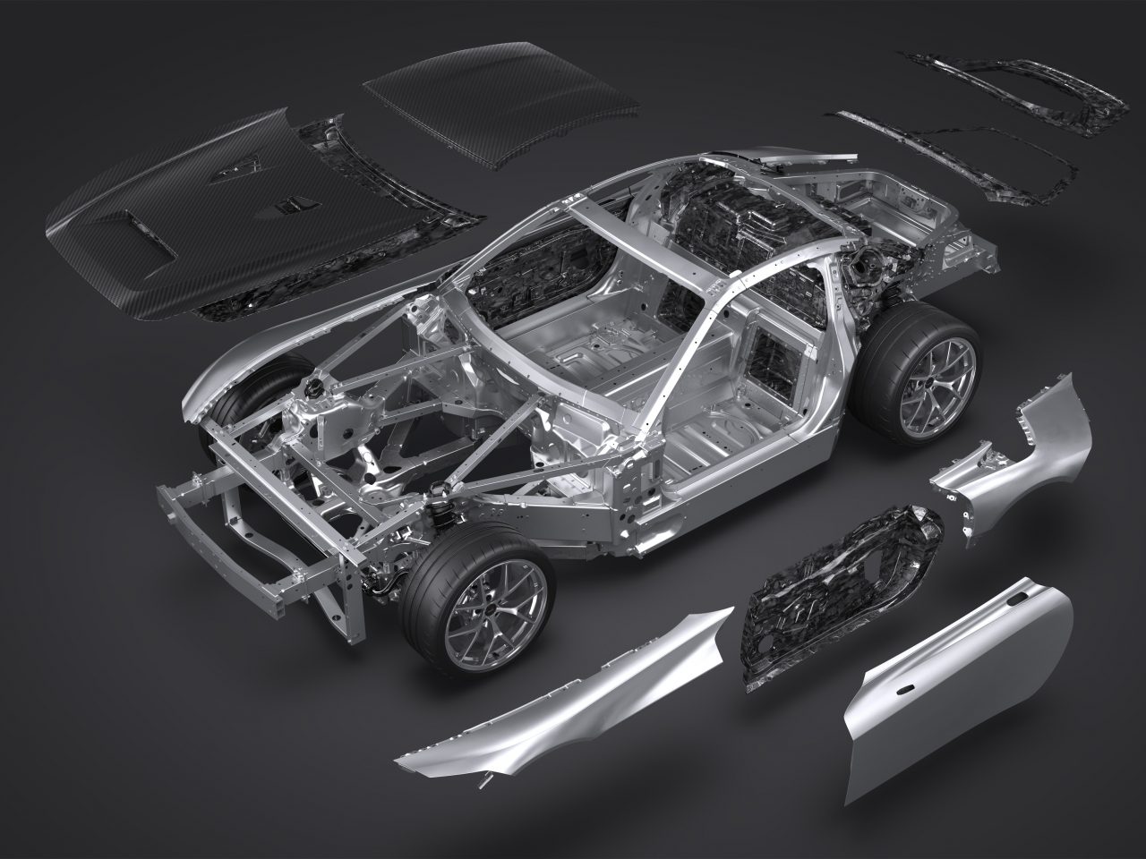 A sigla CFRP (Carbon Fiber Reinforced Plastic) significa plástico reforçado com fibra de carbono, material leve e resistente usado em carrocerias.
