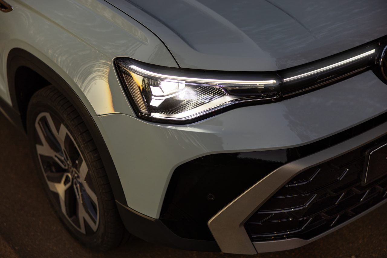 Visualmente, o SUV médio recebeu atualização que o alinha à nova identidade de design global da Volkswagen. Os faróis foram completamente redesenhados com arranjo interno de luzes reformulado e tecnologia IQ.Light que inclui comutação automática de farol alto. O filete iluminado característico da marca foi reposicionado na parte superior da grade, junto ao capô, criando assinatura visual mais moderna e tecnológica.