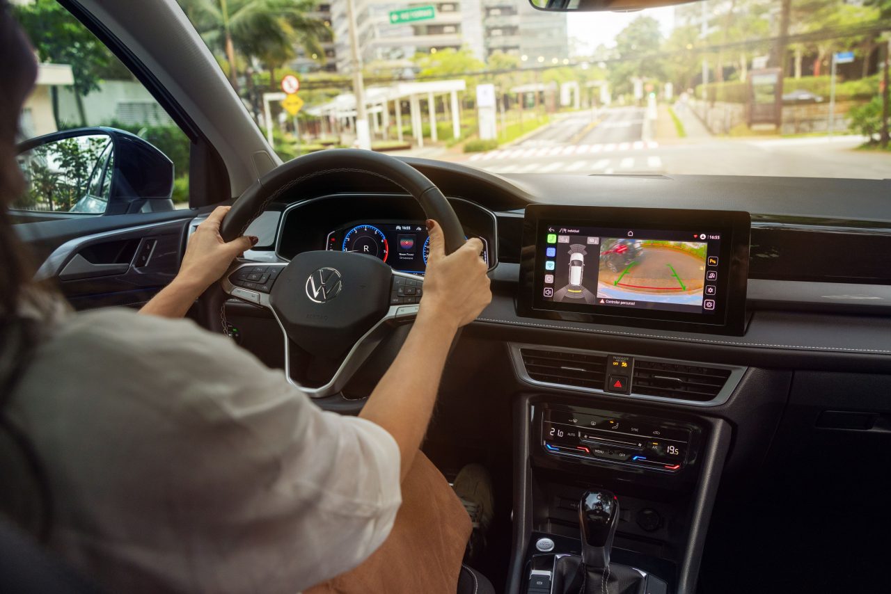 O novo sistema oferece conexão sem fio tanto para Android Auto quanto para Apple CarPlay, eliminando a necessidade de cabos e organizando melhor o espaço interno. As atualizações remotas OTA (over-the-air) permitem que o veículo receba melhorias de software sem necessidade de visitas à concessionária, característica cada vez mais comum em veículos modernos. A integração com o aplicativo My Volkswagen possibilita monitoramento remoto de funções como nível de combustível, quilometragem e localização.