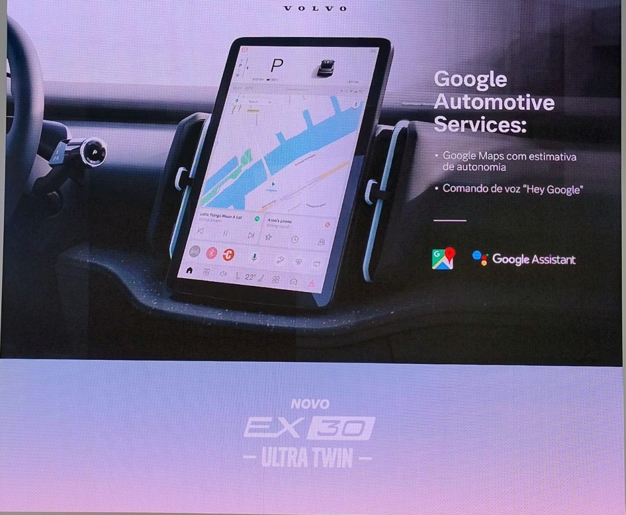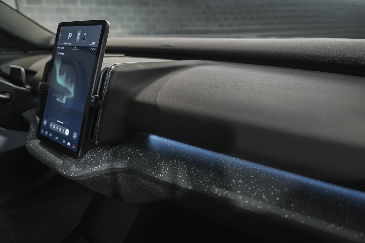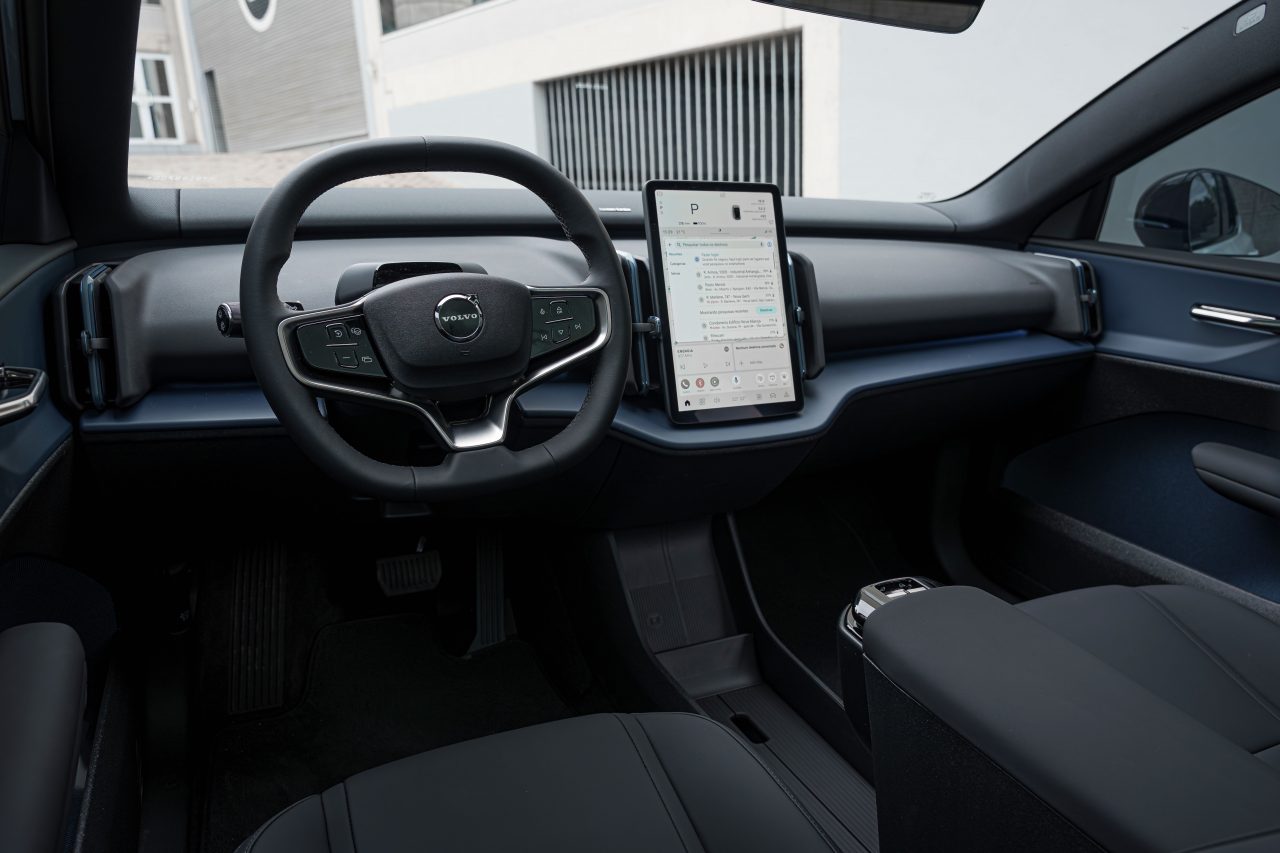 No interior, o EX30 aposta em soluções minimalistas e sustentáveis. Materiais reciclados e de baixo impacto ambiental reforçam o compromisso da Volvo com a sustentabilidade. A central multimídia vertical, integrada ao sistema Google Automotive, oferece conectividade avançada e atualizações remotas.