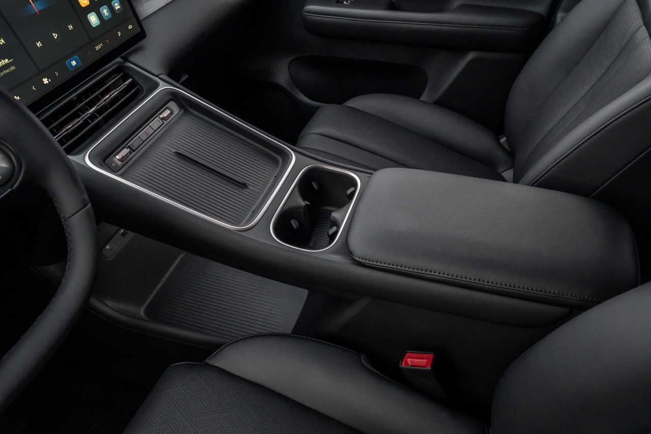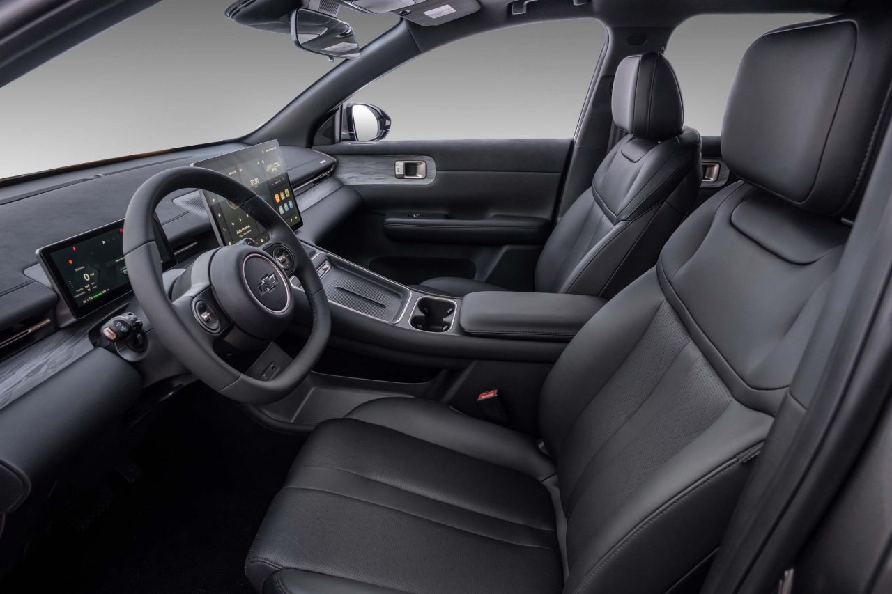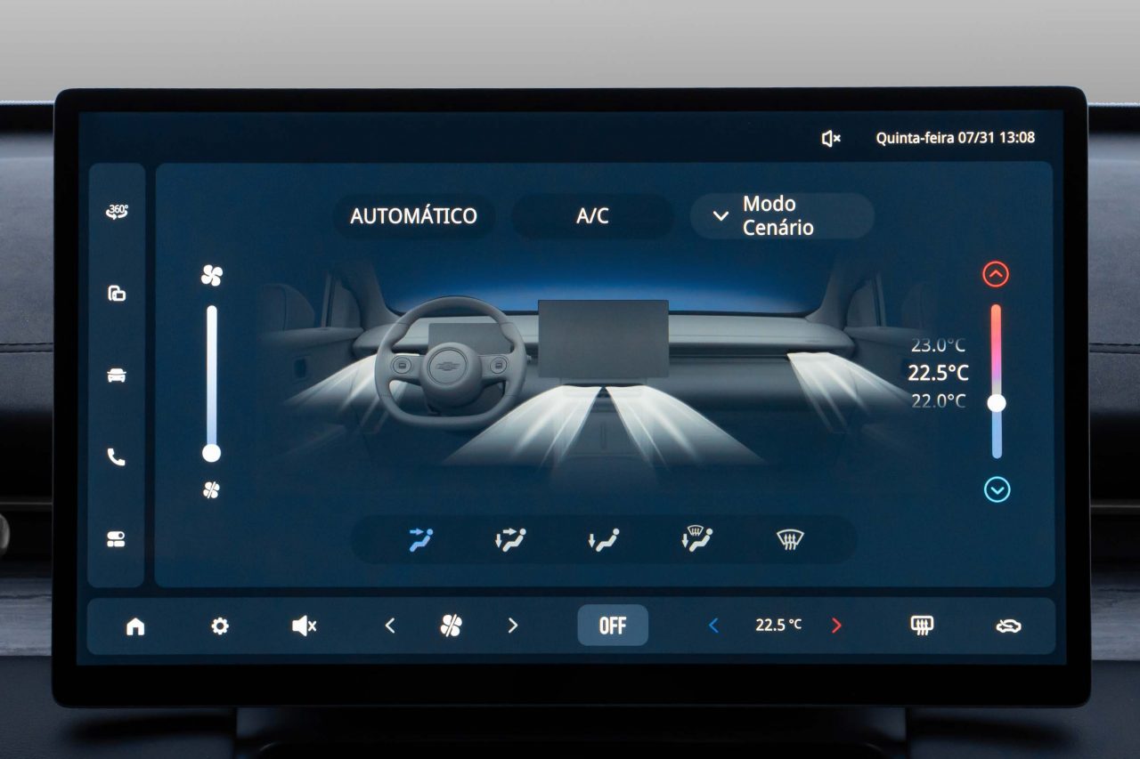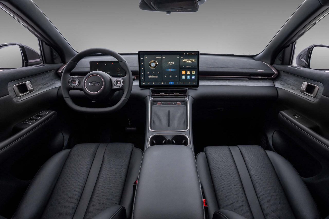 O interior privilegia conforto e tecnologia, com materiais premium, isolamento acústico em 45 pontos estratégicos, vidros laminados e pneus de baixo ruído. A central multimídia vertical de 15,6 polegadas é uma das maiores da categoria, acompanhada por painel digital de 8,8 polegadas e câmera 360°.