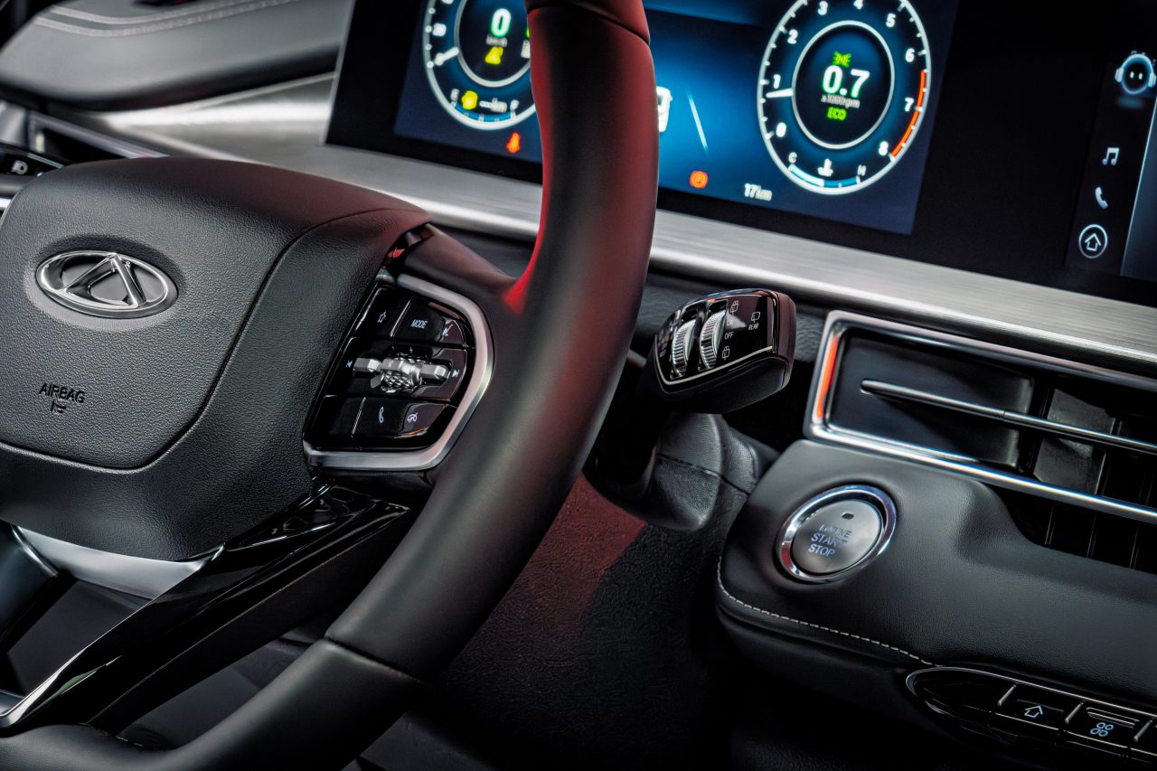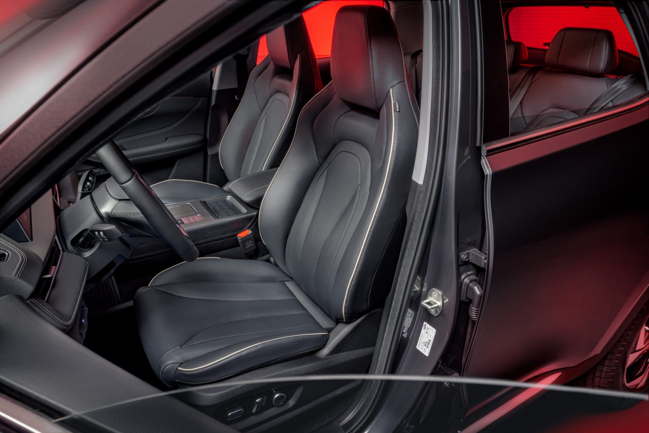 No interior, o destaque é o painel integrado de 20,5” em Full HD, que une quadro de instrumentos digital e multimídia em um único display panorâmico. Há ainda conexão sem fio para Android Auto e Apple CarPlay, comandos por voz e acabamento premium com couro e detalhes em Black Piano.