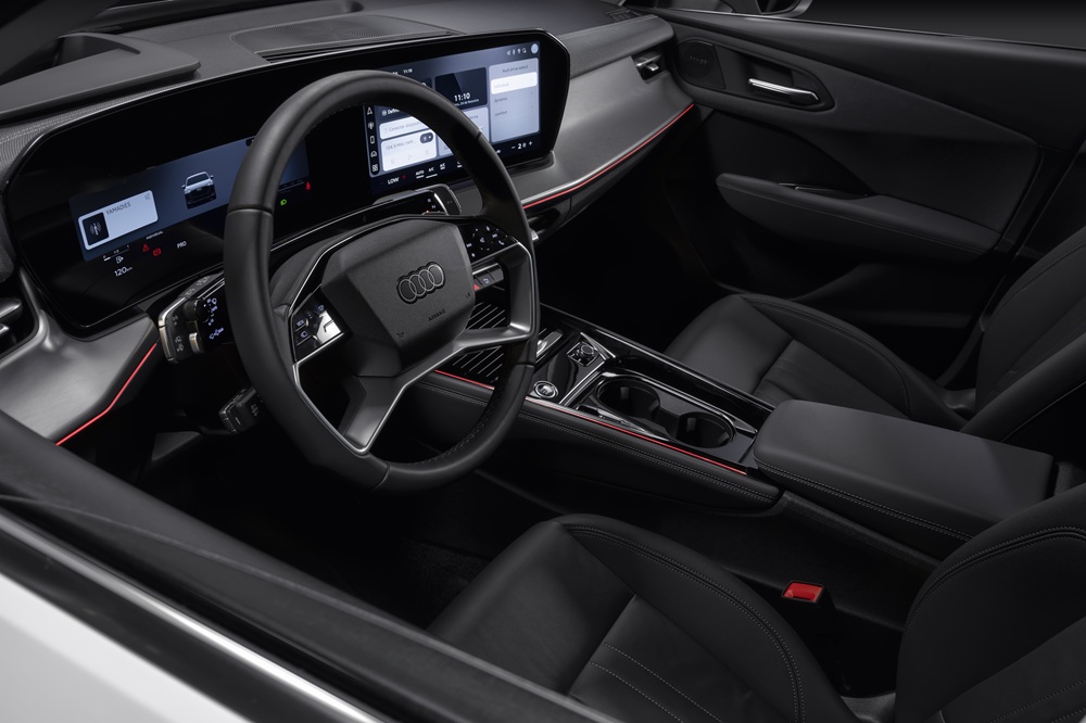 O interior segue o conceito de palco digital, com destaque para o Virtual Cockpit e o sistema Audi MMI integrados em tela panorâmica curvada. Os bancos dianteiros oferecem maior apoio lateral e conforto, enquanto os revestimentos nobres e texturas suaves elevam a sensação de sofisticação.