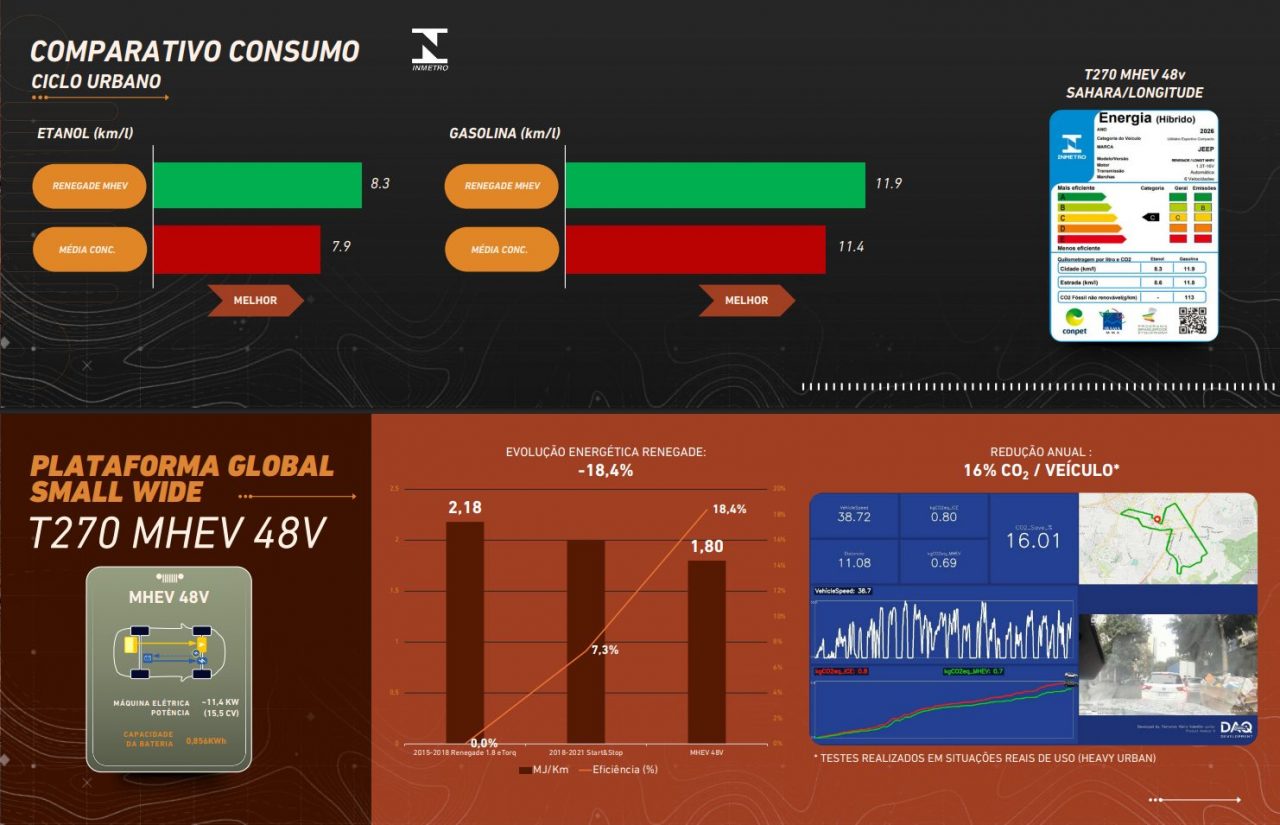 Esses resultados posicionam o Renegade MHEV entre os mais eficientes do segmento no uso urbano.