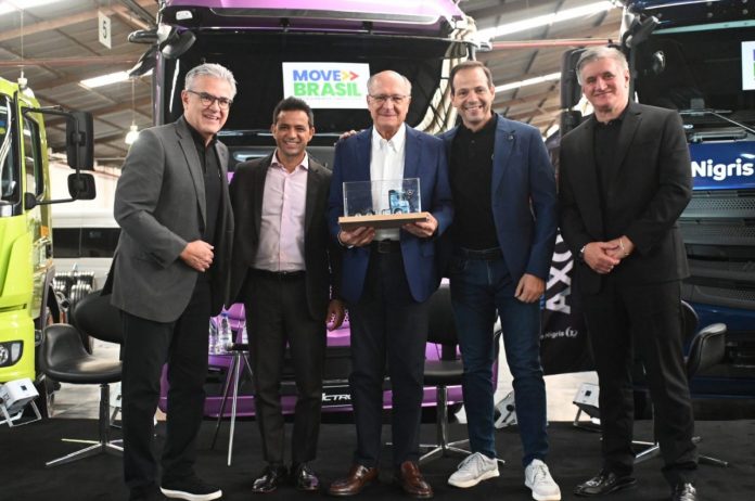 A Mercedes-Benz do Brasil recebeu, no dia 28 de fevereiro, a visita de Geraldo Alckmin, Vice-Presidente da República e Ministro do Desenvolvimento, Indústria, Comércio e Serviços, em evento realizado no Concessionário De Nigris, em São Paulo. O encontro destacou os avanços do programa Move Brasil, que incentiva a renovação da frota de caminhões no País.