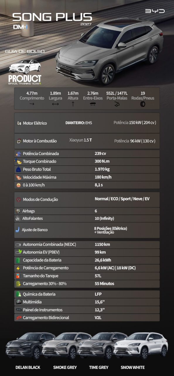 Com essas mudanças, o BYD Song Plus 2027 consolida-se como uma das opções mais completas do segmento, oferecendo tecnologia de ponta, eficiência energética e preço competitivo frente aos rivais.