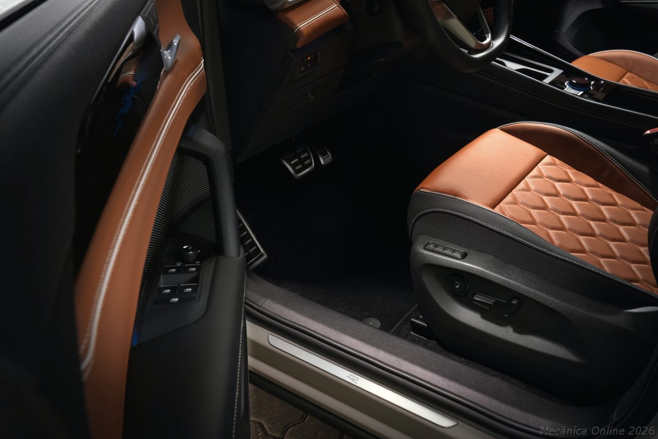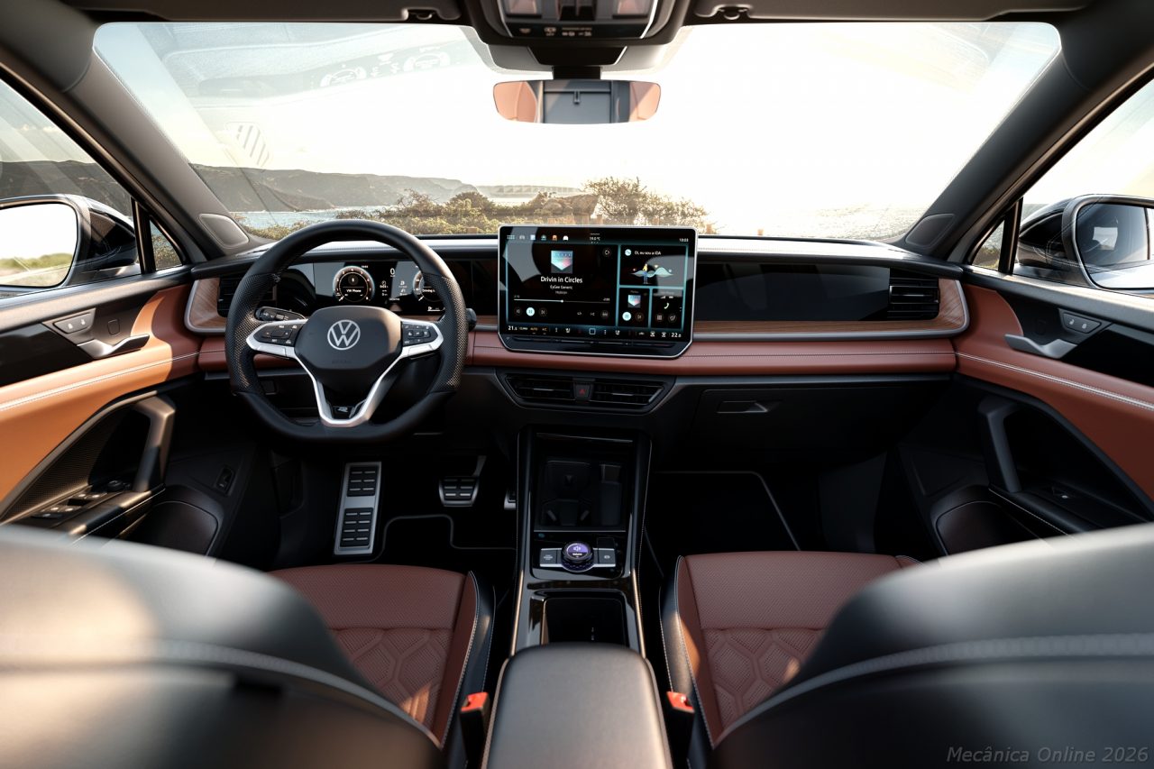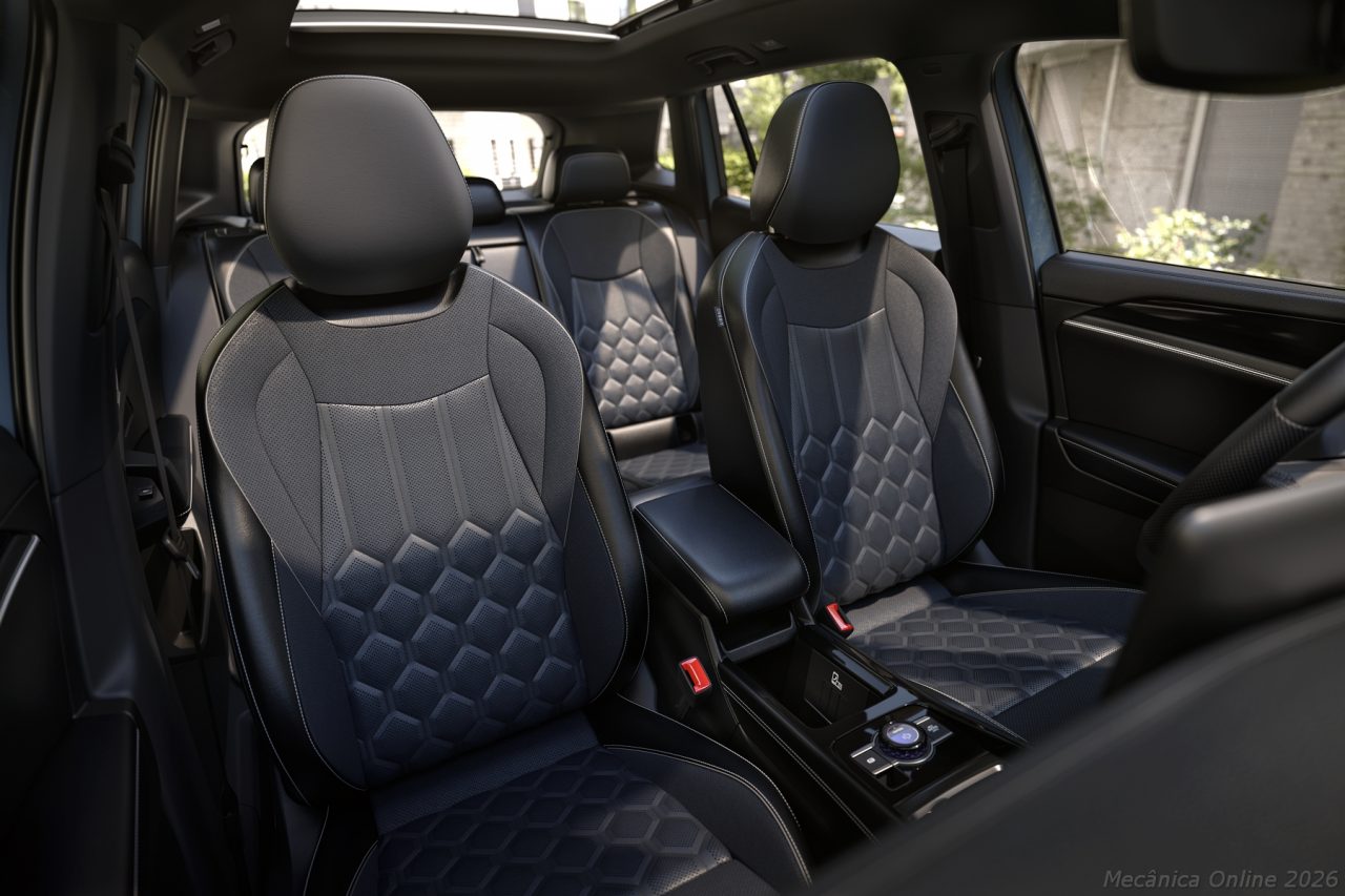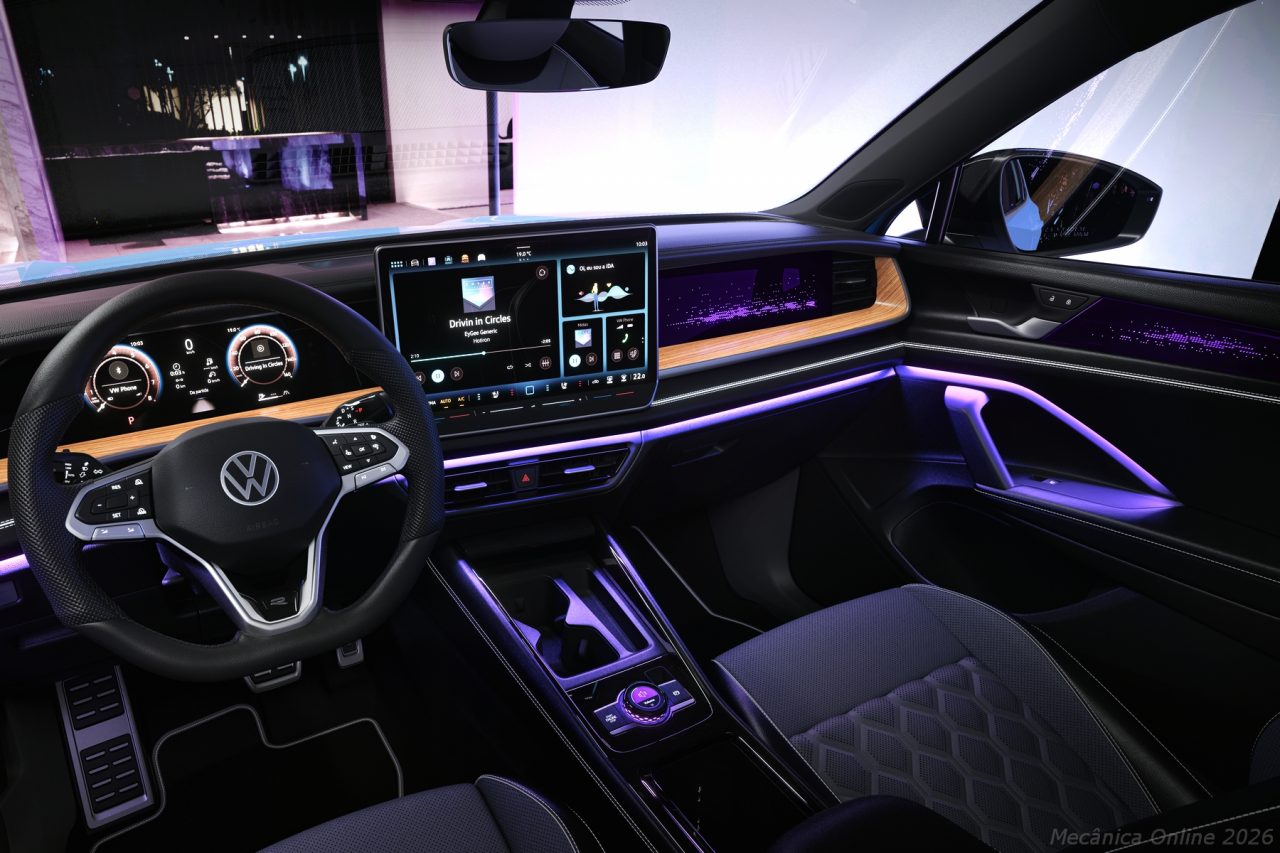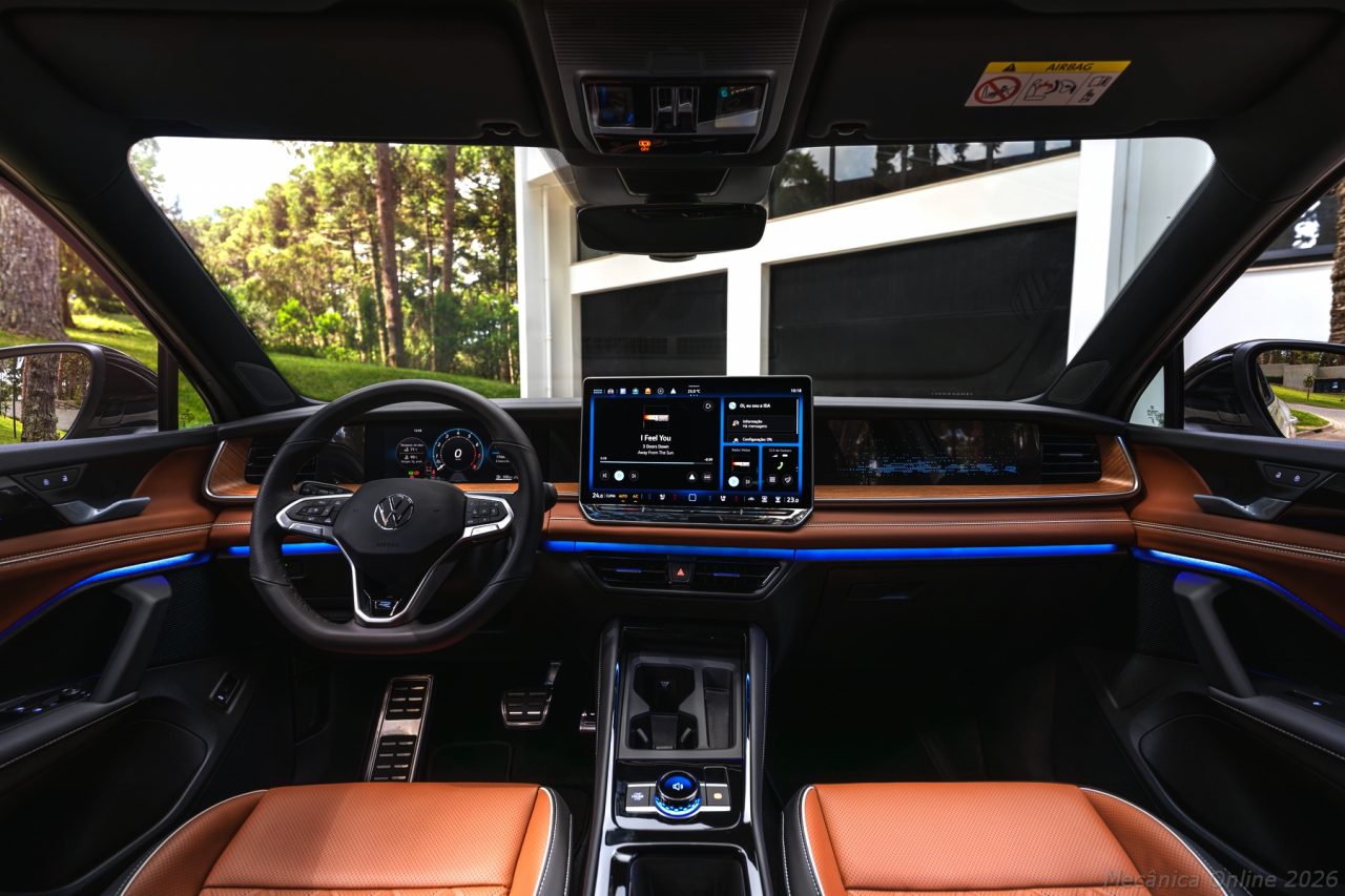 O interior é marcado por uma cabine multissensorial, com mais de 25 polegadas de telas. O painel Digital Cockpit Pro de 10,25” é totalmente configurável, enquanto a central multimídia de 15” traz Apple CarPlay e Android Auto sem fio, além da nova assistente de voz IDA.