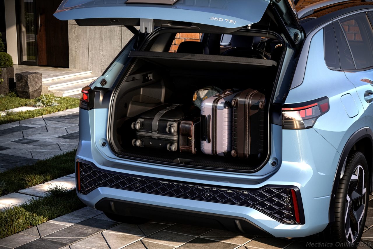 O motor 2.0 EA888 Evo5 entrega a configuração 350 TSI, acoplado à transmissão automática de oito velocidades. A tração integral 4Motion com sistema Haldex distribui potência de forma inteligente, adaptando-se ao terreno sem intervenção do motorista.