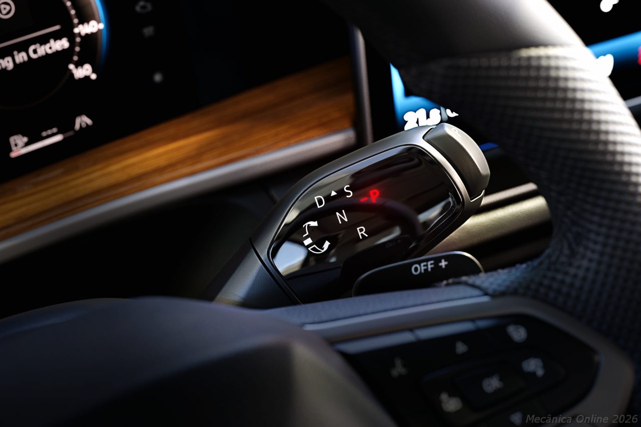 O Ambient Light oferece 30 opções de cores e funções de segurança, como alerta visual ao acionar o pisca ou aviso de desembarque seguro. O inédito Seletor de Experiências substitui a alavanca de câmbio no console, permitindo configurar modos de condução, iluminação e som.