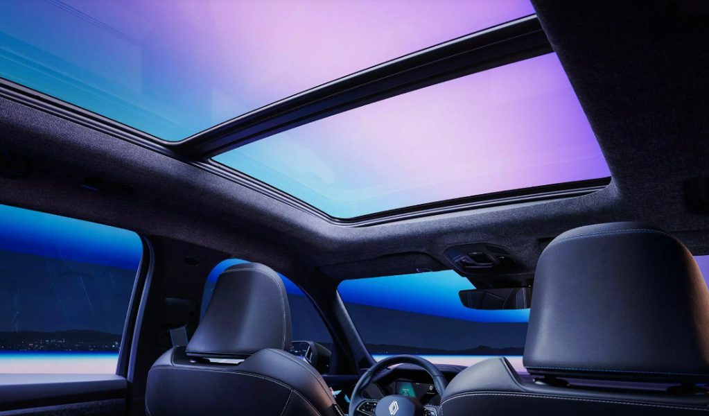 O conforto é ampliado pelo teto solar panorâmico elétrico e pela iluminação ambiente personalizável, que cria uma atmosfera refinada para os ocupantes.