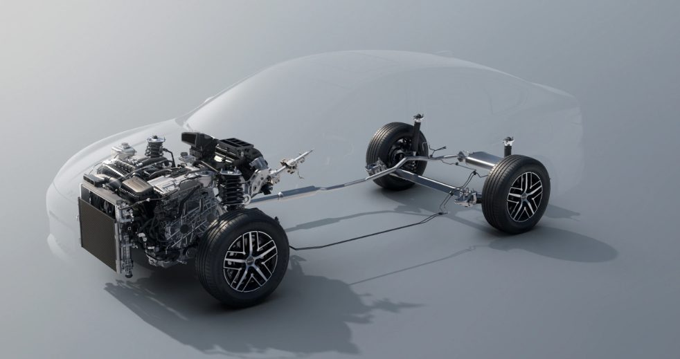 O conjunto mecânico combina o motor 1.5 aspirado de 110 cv a uma unidade elétrica de 163 cv, entregando uma potência combinada estimada em 230 cv.