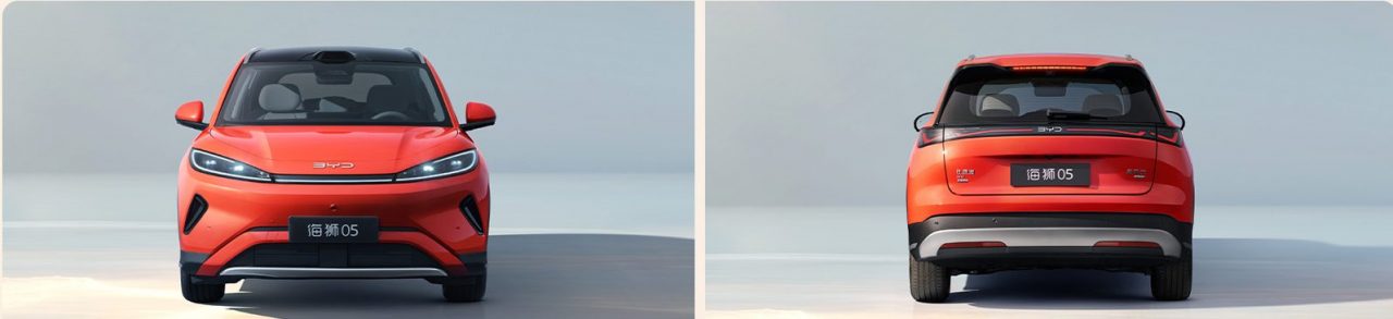 O Sealion 05 DM-i adota a grade frontal sem moldura e faróis retangulares, seguindo o padrão visual do sedã King e distanciando-se da linha Song.