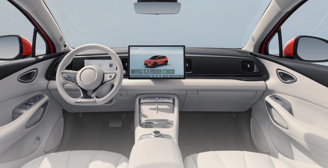 No interior, a cabine traz a central multimídia giratória de até 15,6 polegadas e o quadro de instrumentos digital de 8,8 polegadas integrado ao painel.