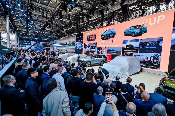A CAOA Chery utiliza a vitrine de Pequim para monitorar tecnologias que possam ser integradas à produção nacional, avaliando a aceitação de recursos como o estacionamento inteligente e a motorização híbrida otimizada por IA.