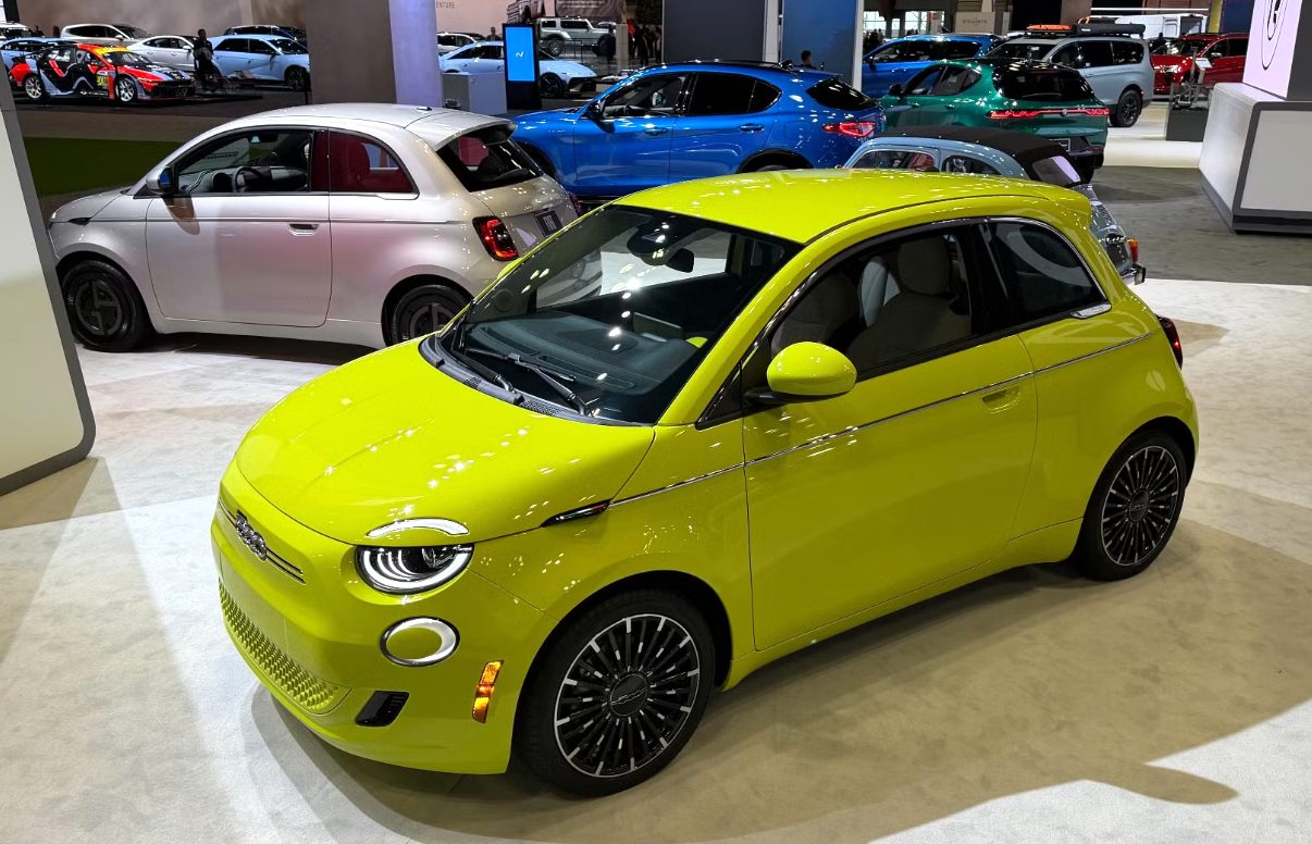 O designer aposentado da General Motors, Dave Rand, nota um ressurgimento de tons pastel em veículos menores, como o Fiat 500e, evocando a estética dos anos 50.