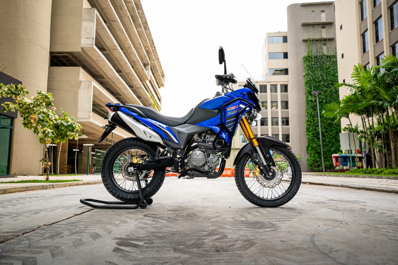 O motor DOHC de 249cc é o coração da máquina, entregando 30,8 cv a 9.000 rpm, o que garante fôlego extra para ultrapassagens e trechos rodoviários.