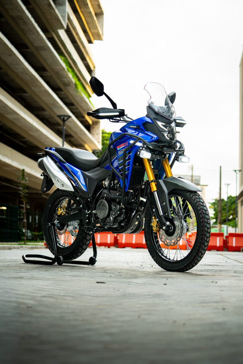 A Shineray SBM 250T chega ao mercado brasileiro com um motor monocilíndrico de 249cc que entrega 30,8 cv de potência, posicionando-se como uma opção de alto desempenho para o uso misto. Com um peso em ordem de marcha de 143 kg e câmbio de 6 marchas, a motocicleta oferece uma relação peso-potência competitiva e autonomia garantida pelo tanque de 13 litros. O pacote tecnológico inclui suspensão dianteira invertida e iluminação full LED, focando no público que busca versatilidade entre o asfalto e a terra.